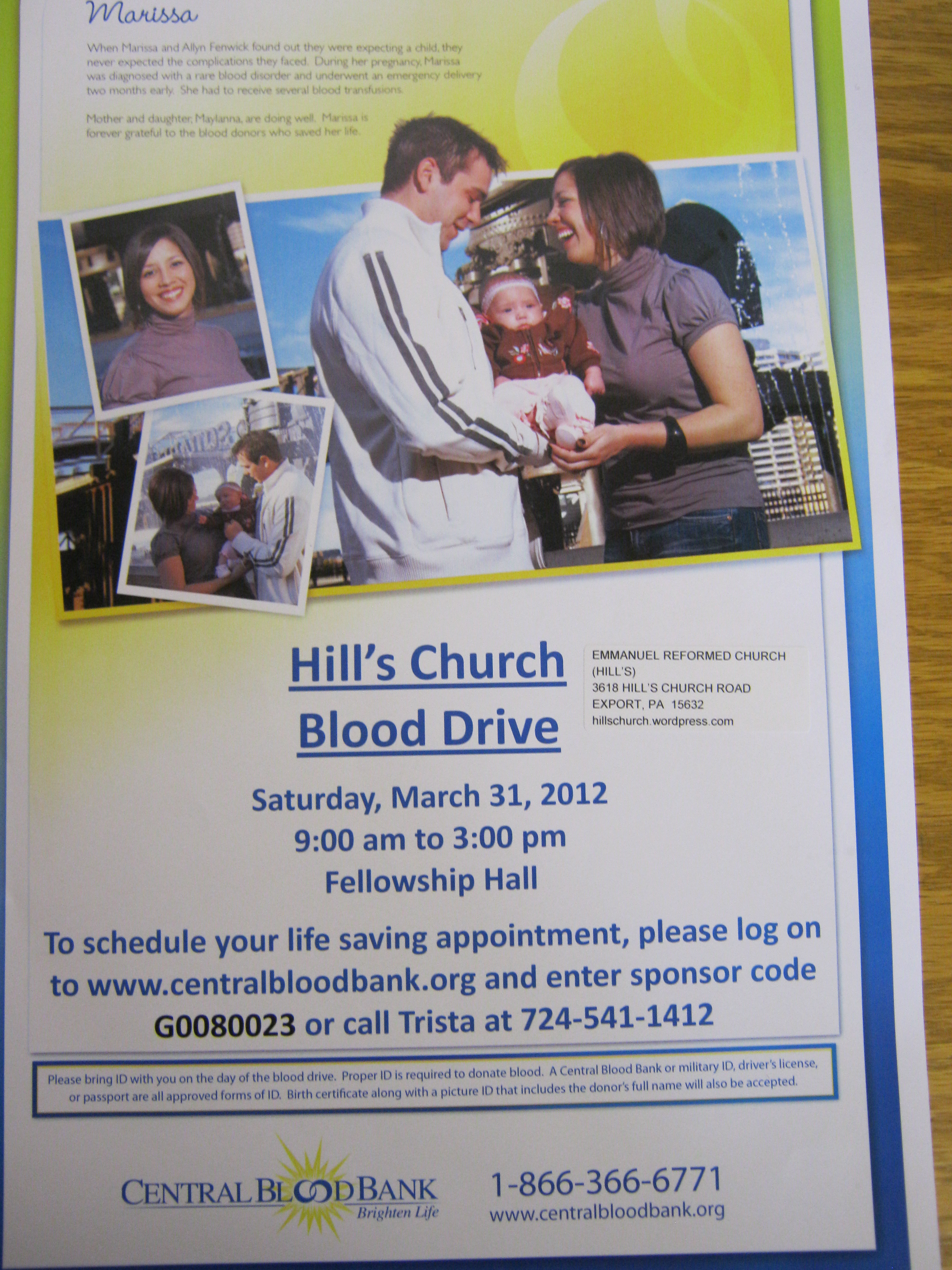We are so excited to be partnering with the Central Blood Bank in a few days for our first ever Blood Drive! We would love to visit with you on Saturday and assist you with this life-giving donation of blood. Your contribution really makes a difference. See you Saturday!