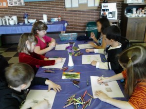 This week the children enjoyed a lesson with dirt and crayons. If you are a kid, it doesn’t get much better than that! This week’s lesson was one that I designed to incorporate all ages. Our youngest group (0-3) was going to read a book entitled Designed by God. This sweet little book describes each of our senses and how God gave us each for a very special purpose. I was going to have Mrs. Graham read the little ones this book in the nursery while I taught my lesson. I was then going to invite them to join the older kids where I could encourage them to use their senses. We didn’t have any wee little ones (besides my daughter) this week so we are going to save this book for next week.