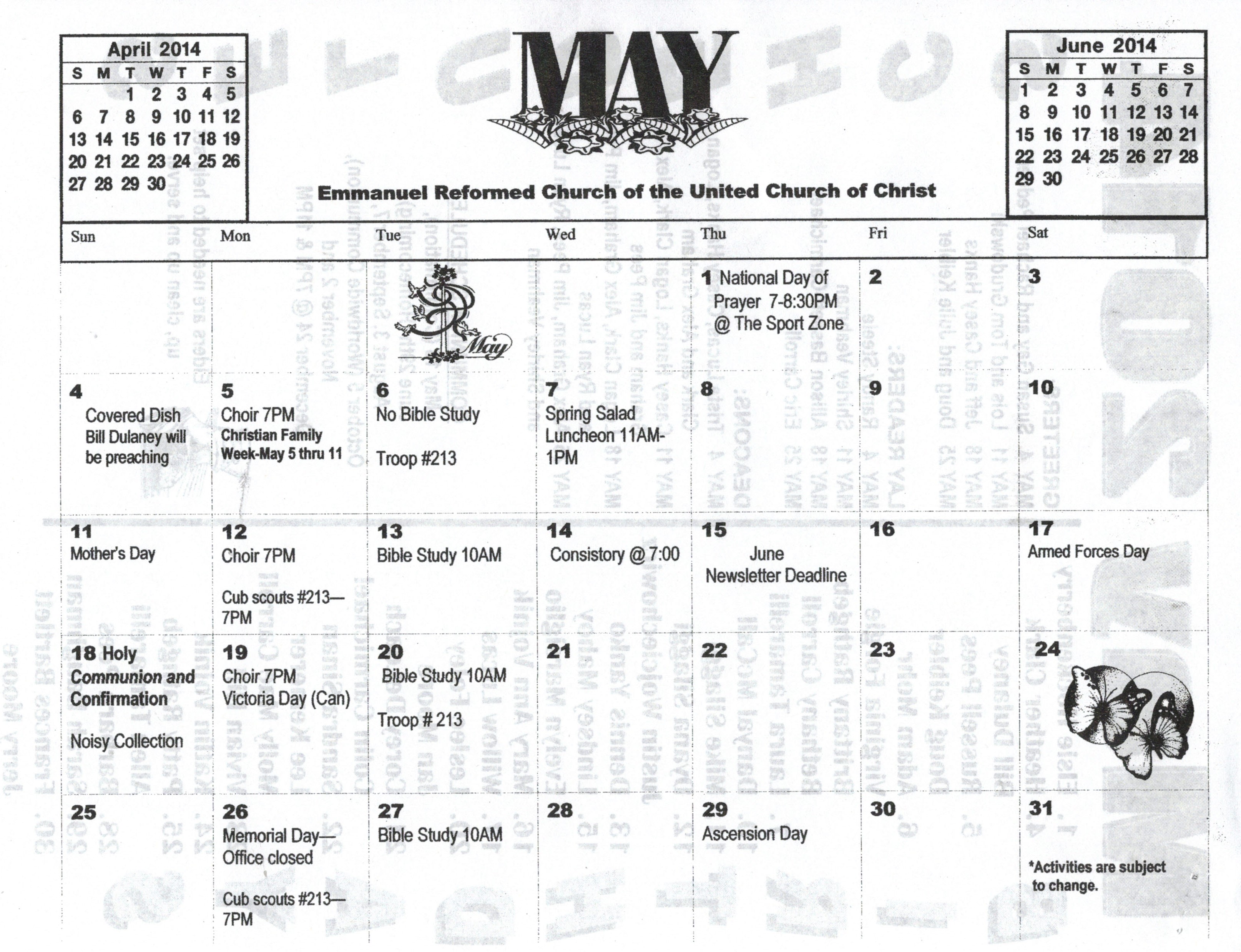 Below is the May/June 2014 Newsletter. If you would prefer to recieve a hard copy in the mail, please email or call the church office: