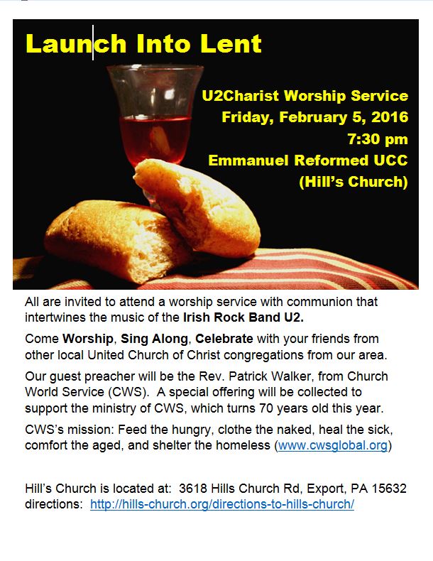 Coming Up–February 5, 2016–“Launch into Lent with a U2Charist.”
