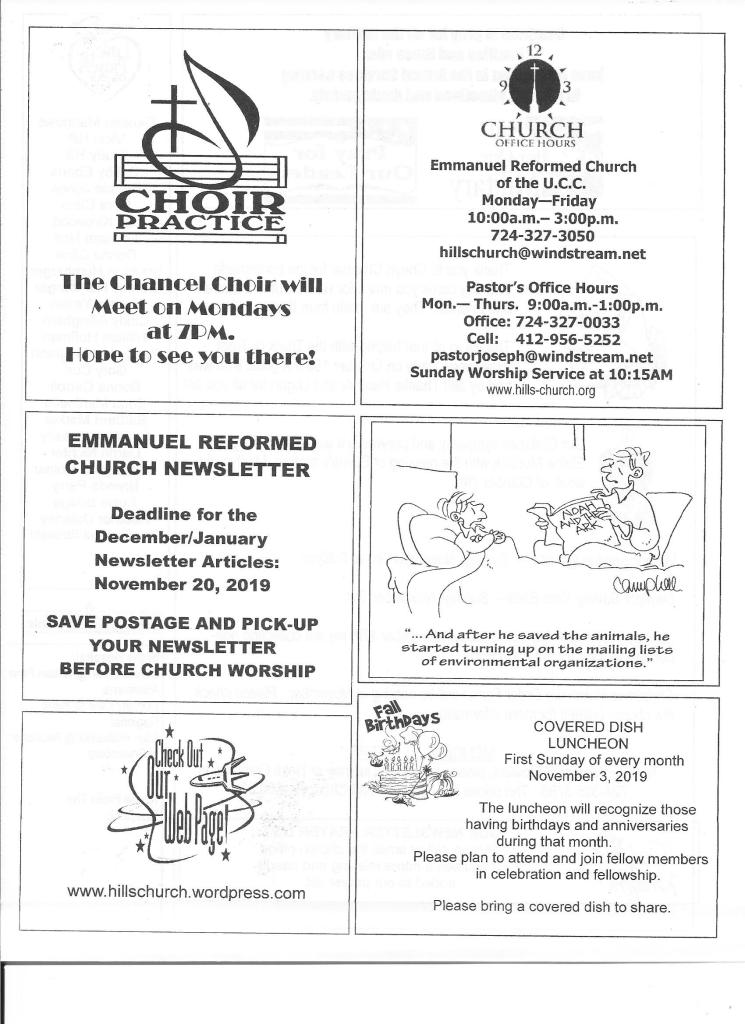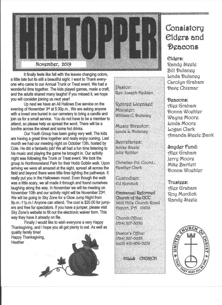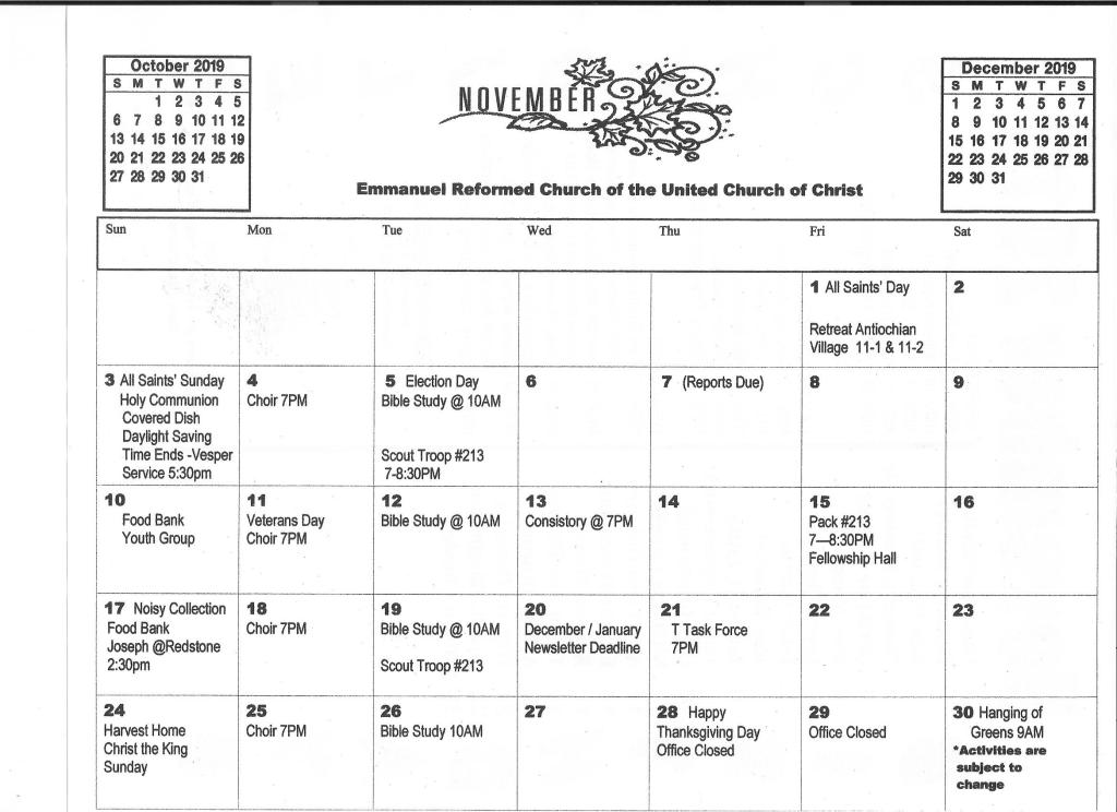 It’s a beautiful fall morning on God’s hill! Below is our online newsletter which you can use to get all the news that’s coming up in November and December. There’s a lot going on so read carefully and don’t miss out.