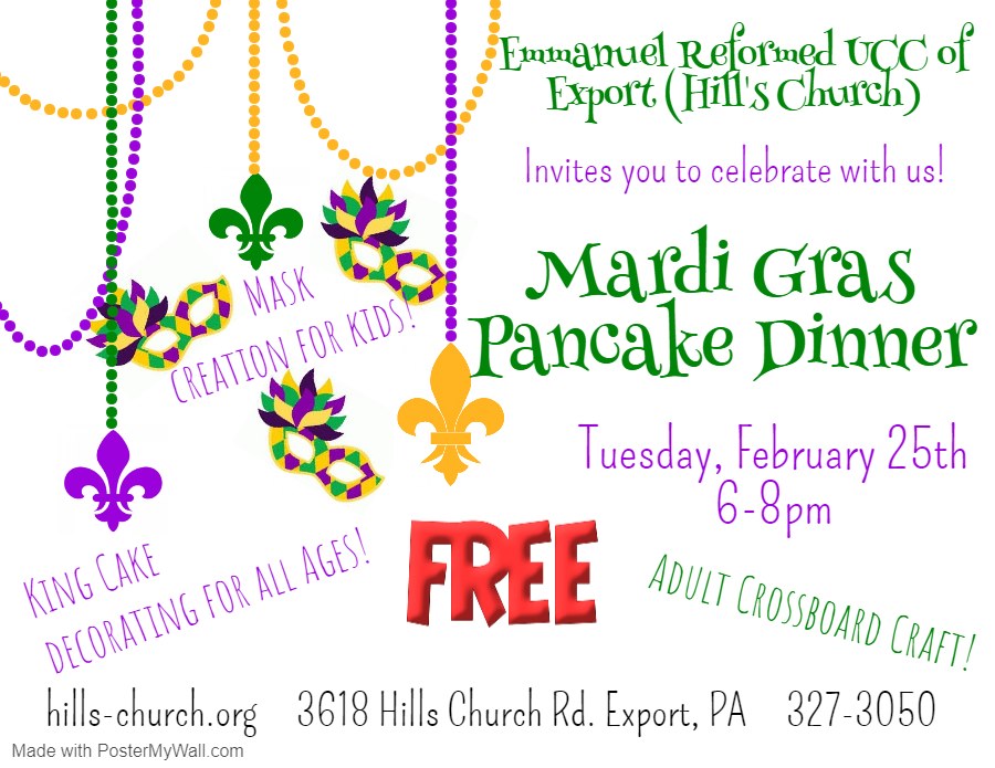 Mardi Gras 2020. Tuesday, February 25th. 6 – 8 p.m.