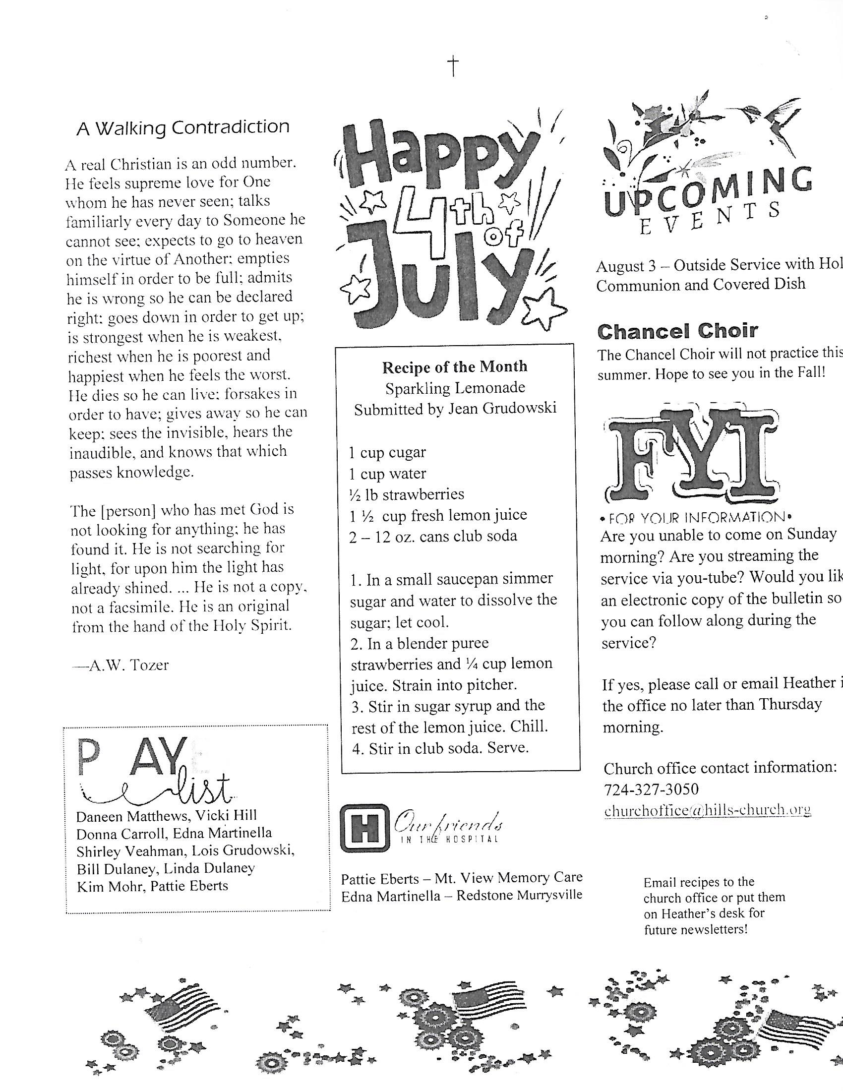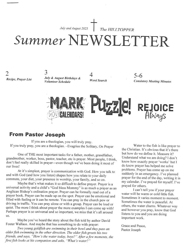 Newsletter and Calendar